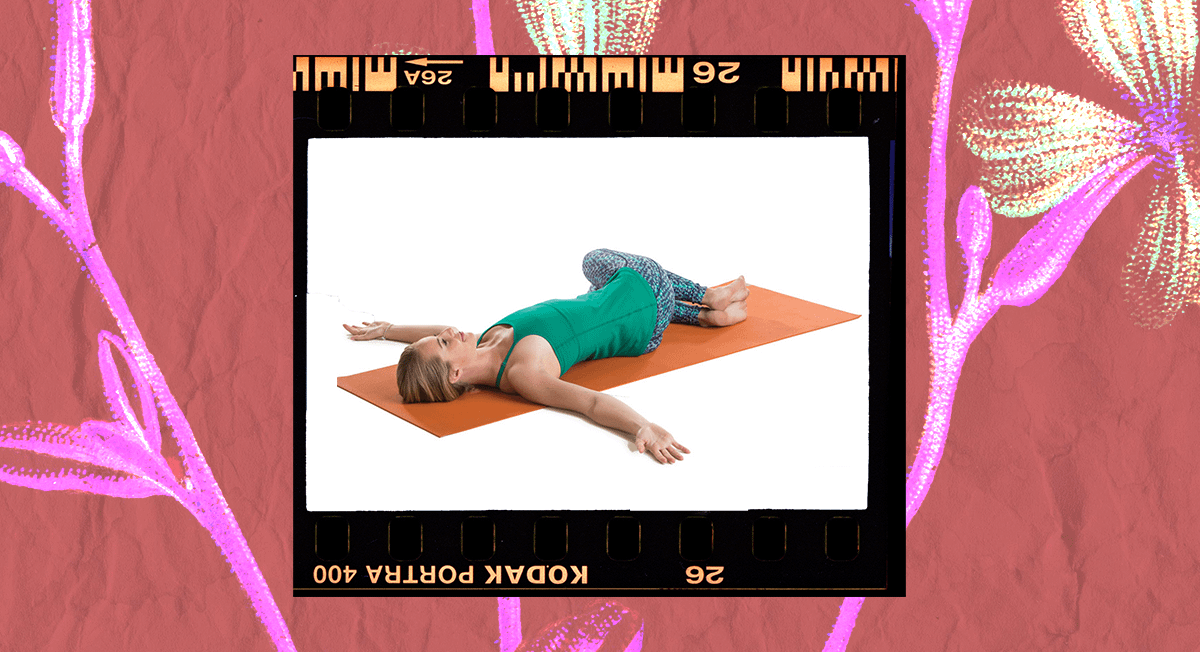 • ляг на спину, согни ноги в коленях, стопы поставь на ширине бедер, а руки расположи вдоль тела;