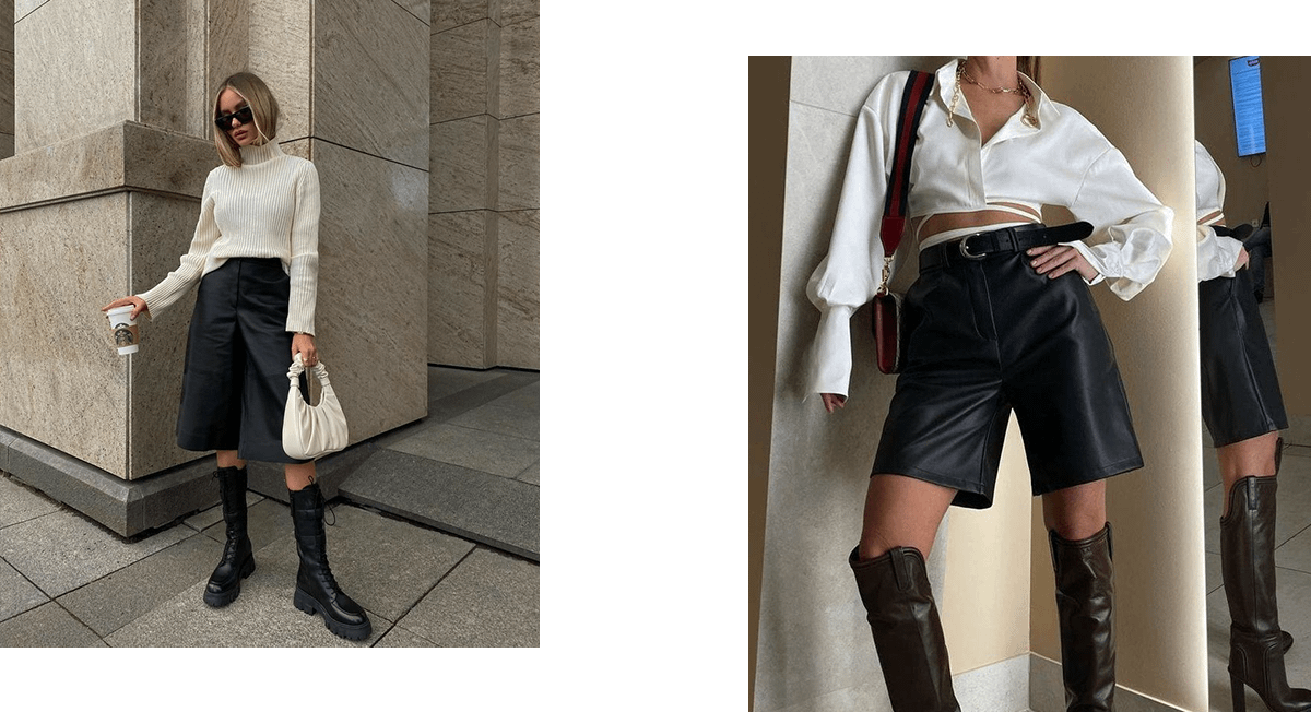 Было время, когда кожаные бермуды составляли часть базового гардероба. Их носили и с кедами, и с открытой обувью, и с высокими сапогами. Но оглядываясь назад, можно сказать, что большинство аутфитов выглядело довольно странно и даже несуразно. Особенно в холода.
