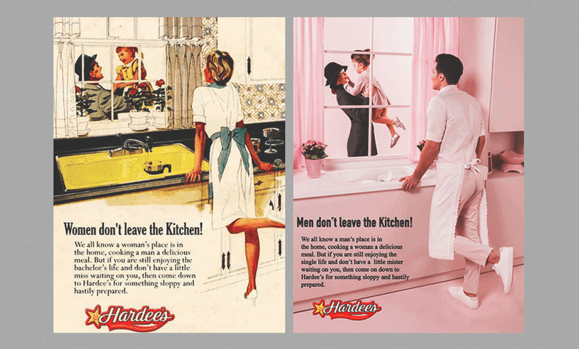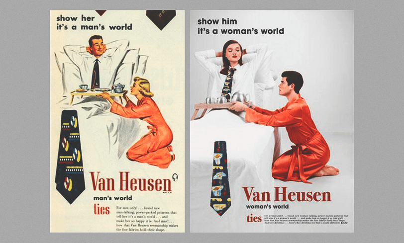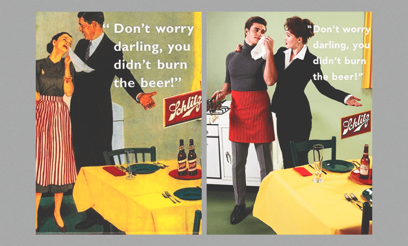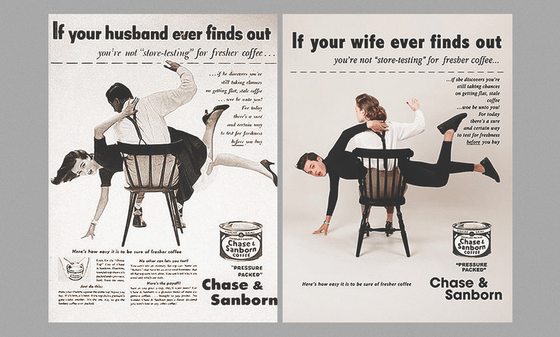 В новом прочтении олдскульной рекламы мужчины приносят завтрак в постель, моют горы посуды, а также получают наказания за проступки в виде шлепанья.