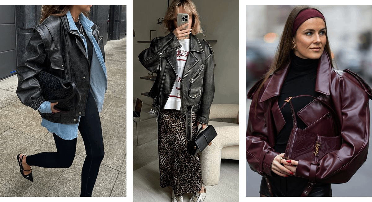 Хочешь выглядеть дерзко? Тогда обрати внимание на кожаные куртки в трендовом бордовом оттенке. Модели в черном и темно-коричневом оттенках тоже актуальны, но выглядят менее ярко.
