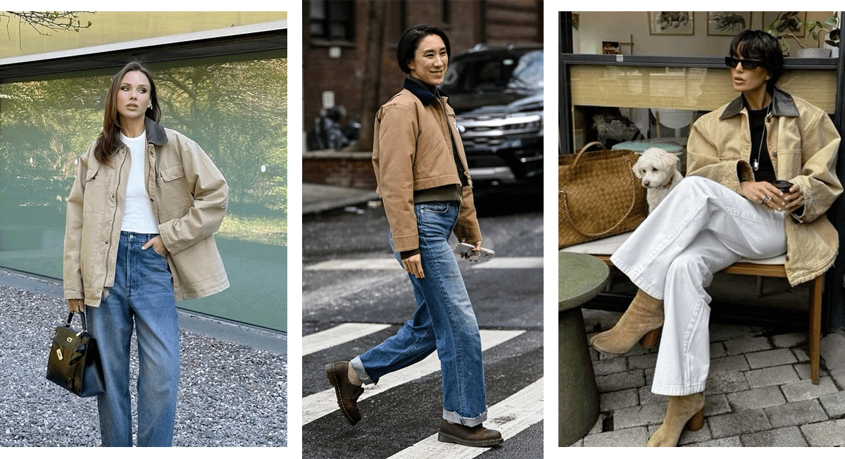 В тренде бежевые, коричневые и темно-зеленые куртки в рабочем стиле. Носи их в образе с базовыми джинсами, большими сумками и кроссовками в винтажном стиле. Актуальны как удлиненные модели, полностью прикрывающие ягодицы, так и укороченные.