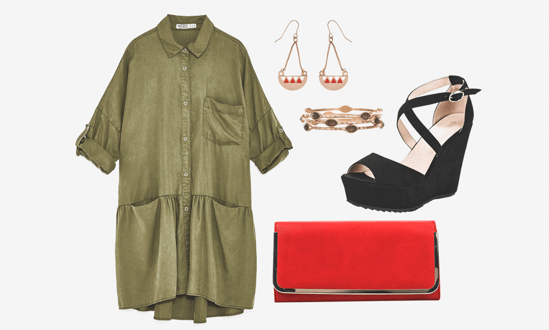 Платье-рубашка Zara, 2999р. Клатч Aldo, 2 600 р.