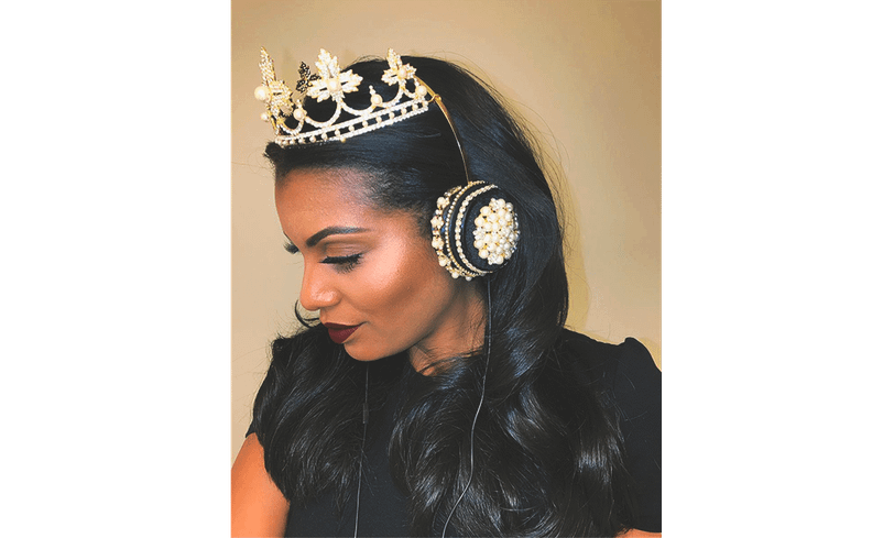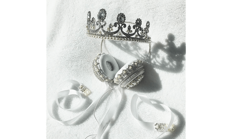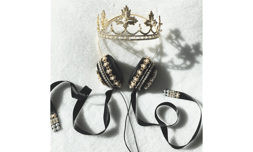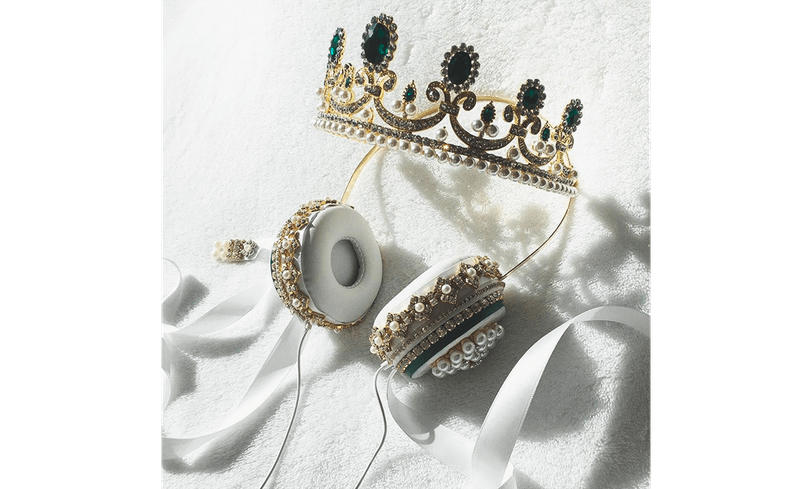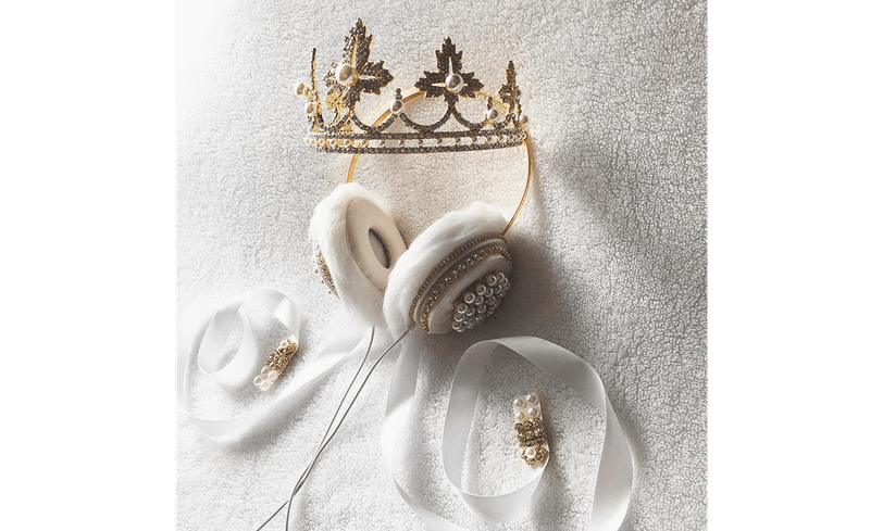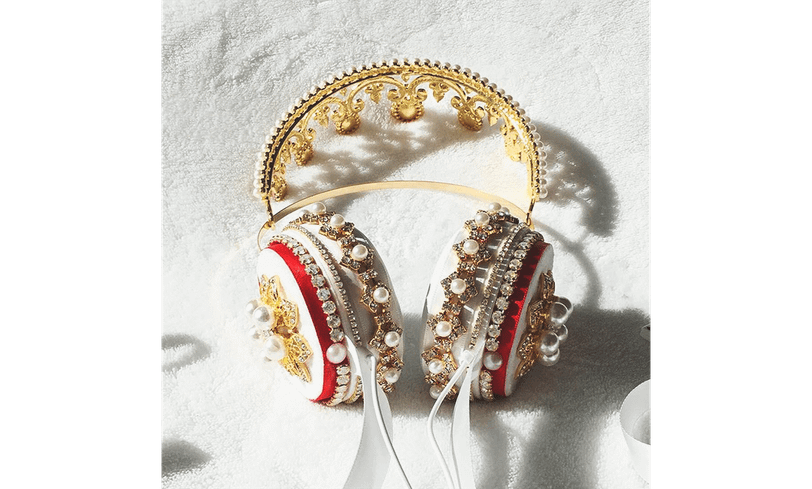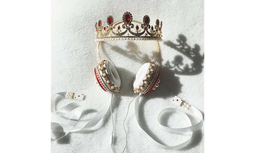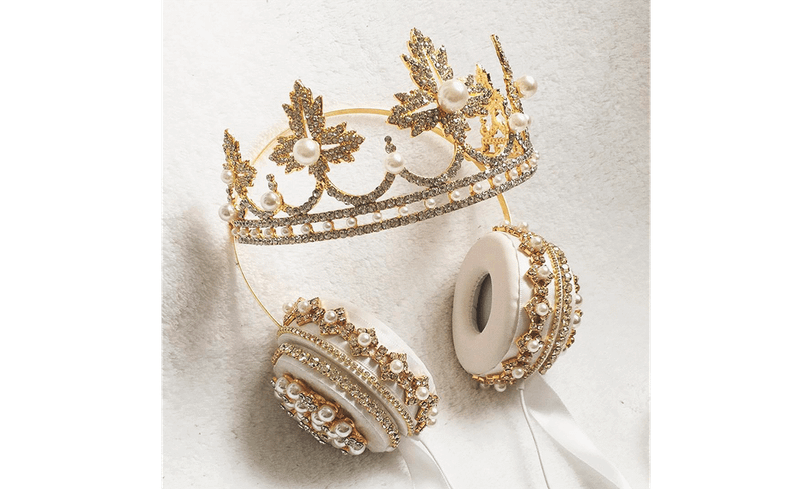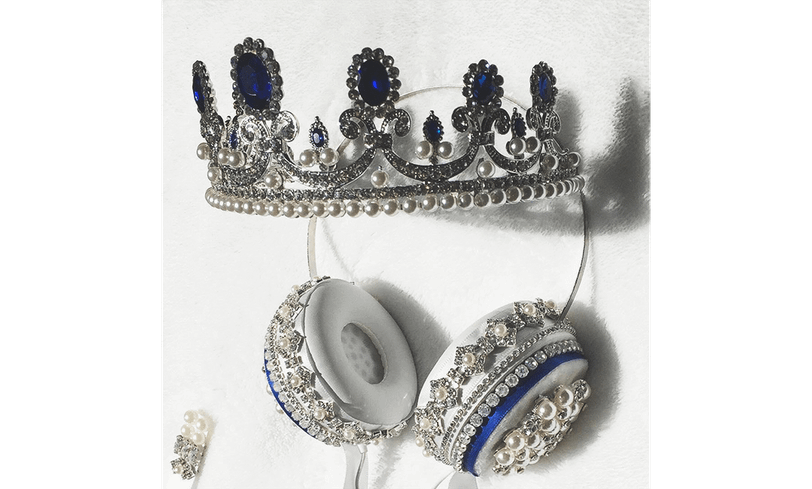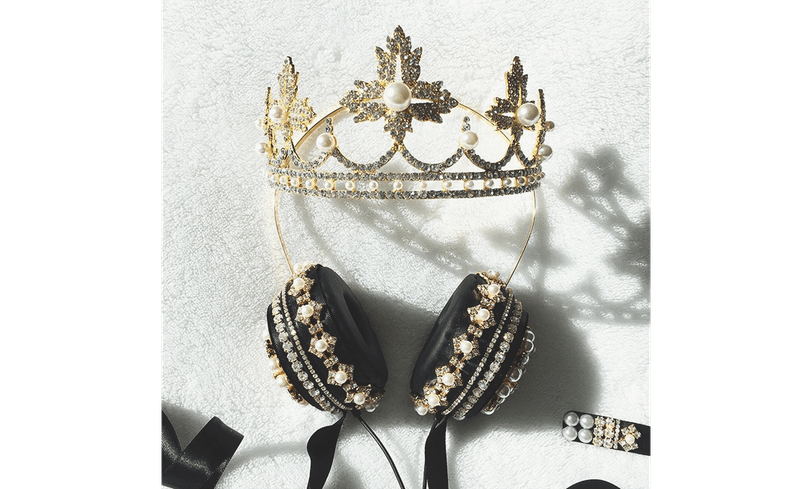 Бренд Lit Headphones создает наушники-короны, украшенные золотом, серебром, кристаллами или жемчугом, шелком и бархатом.