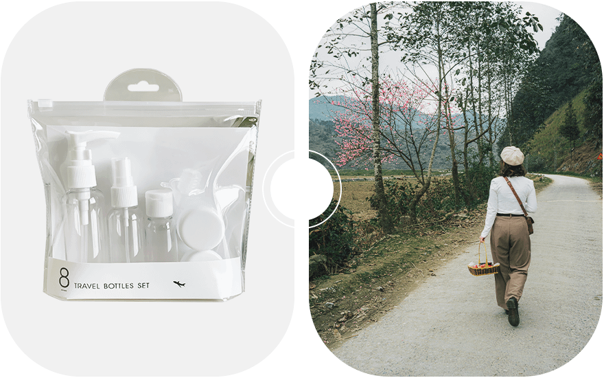 Полноразмерные флаконы с косметикой точно займут много места в твоей сумке. Тем более, если ты летишь в самолете с ручной кладью, нужно помнить об ограничении жидкостей в 100 мл. В таких ситуациях спасают тревел-контейнеры — небольшие емкости по 30-50 мл. Купить их можно в любом гипермаркете или заказать на маркетплейсе, а прослужат такие флаконы не один год.