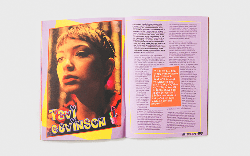 В отличие от девушек, выросших на гранже и телешоу, миллениалы имеют доступ к цифровым редакторам, так что красивая картинка уже не является недостижимой роскошью, а становится естественным компонентом композиции. Примечательно, что тот же Polyester, копируя эстетику прошлых лет, все же приближен к глянцевым изданиям — да, фото неаккуратные, но нарочито. Современный издатель зина может позволить себе известного фотографа, арт-директора или даже знаменитость на обложке. К примеру, шестой номер Mushpit отснял Тайрон Леброн, а Polyester заручился поддержкой Тави Гевинсон, основательницы блога Style Rookie.