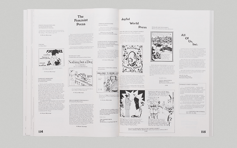 Гримстад и Ренни, работая над изданием, хотели отразить в нем все важные для феминистки той поры сведения: где получить грамотную медицинскую помощь, куда обратиться, чтобы реализовать творческий потенциал или взять кредит, что делать, если нужна помощь правозащитников, как и где получить развод. Так и вышло, но вдобавок девушки приправили «Каталог» фотографиями из перечисленных организаций — те порой оформляли свои лого психоделично — и советами автостопщицам в духе: