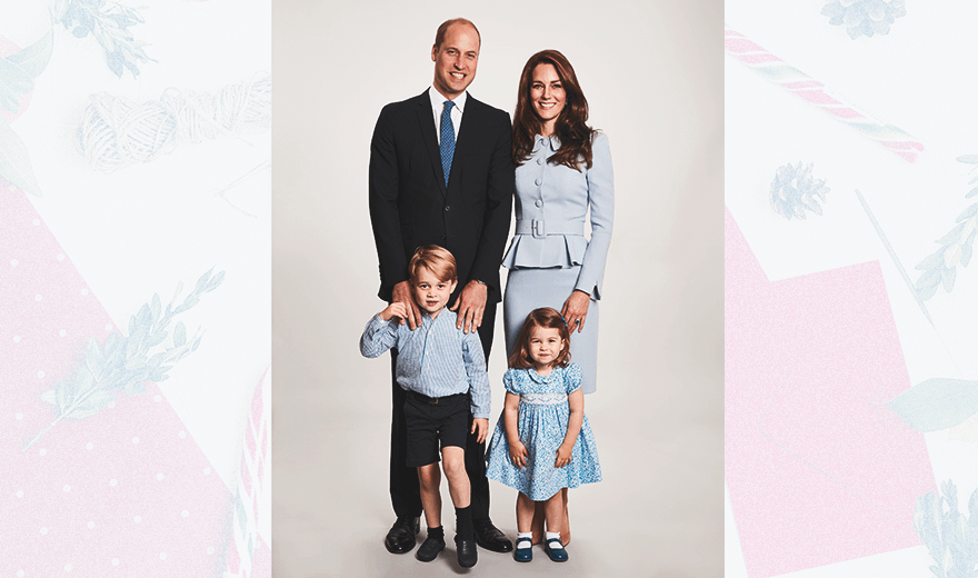 В 2017 году принц Уильям и Кейт Миддлтон поделились перед Рождеством довольно официальным снимком, сделанным в Кенсингтонском дворце. На нем изображены Джордж и Шарлотта с родителями. Портрет сделал Крис Джексон, на счету которого много личных фотографий для королевской семьи.