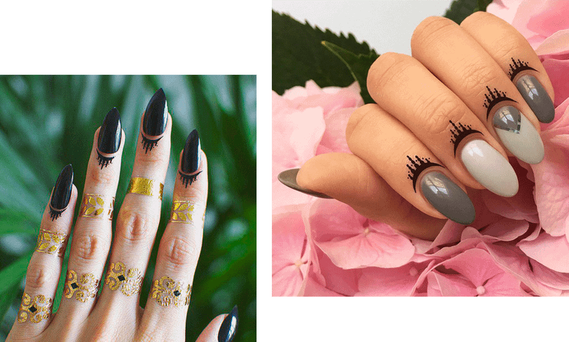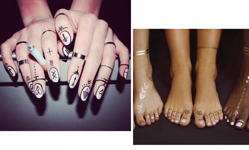 Для тех, кто интересуется татуировками, но не готов к встрече с иголкой, салоны придумали временные решения хной или джагуа, а некоторые пользователи Instagram используют металлик-наклейки или готовые стикеры.