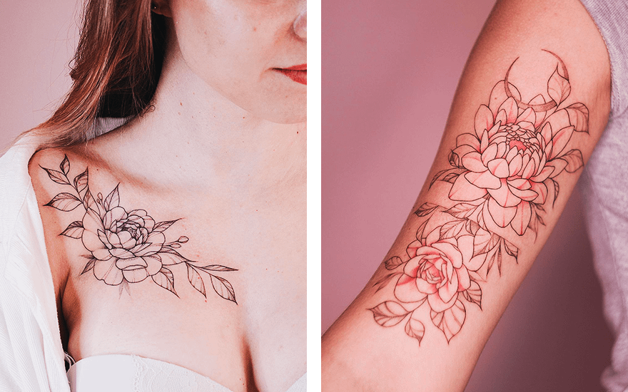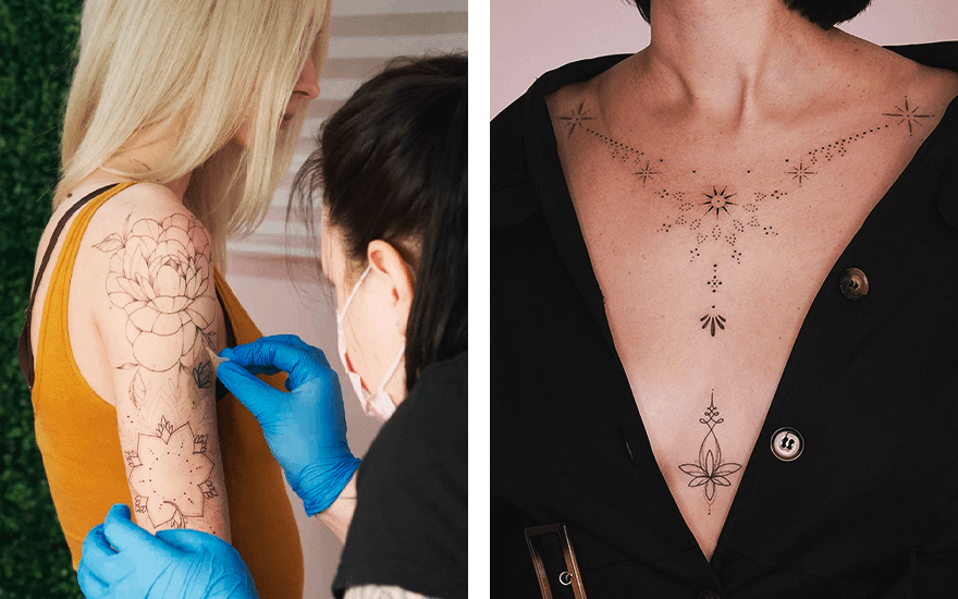 Можно воспользоваться лайфхаком — наклеить переводную тату. Это поможет понять, как ты будешь себя чувствовать с рисунком на теле. Многие мои клиентки решились на свою первую тату после того, как сделали переводную.