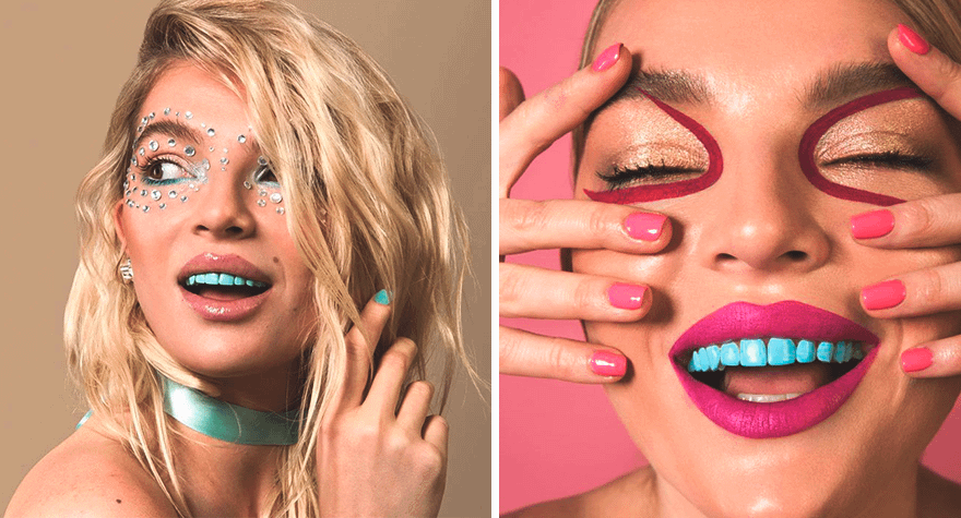 Тренд последних лет – покрыть зубы цветным лаком. Золотом и серебром уже никого не удивишь, а вот розовые или синие зубы — вполне еще экзотика. Лак держится недолго – максимум пару недель, так что такой способ годится для конкретной вечеринки. Сделать зуб цветным на более долгий срок можно, поставив покрашенную коронку или винир.
