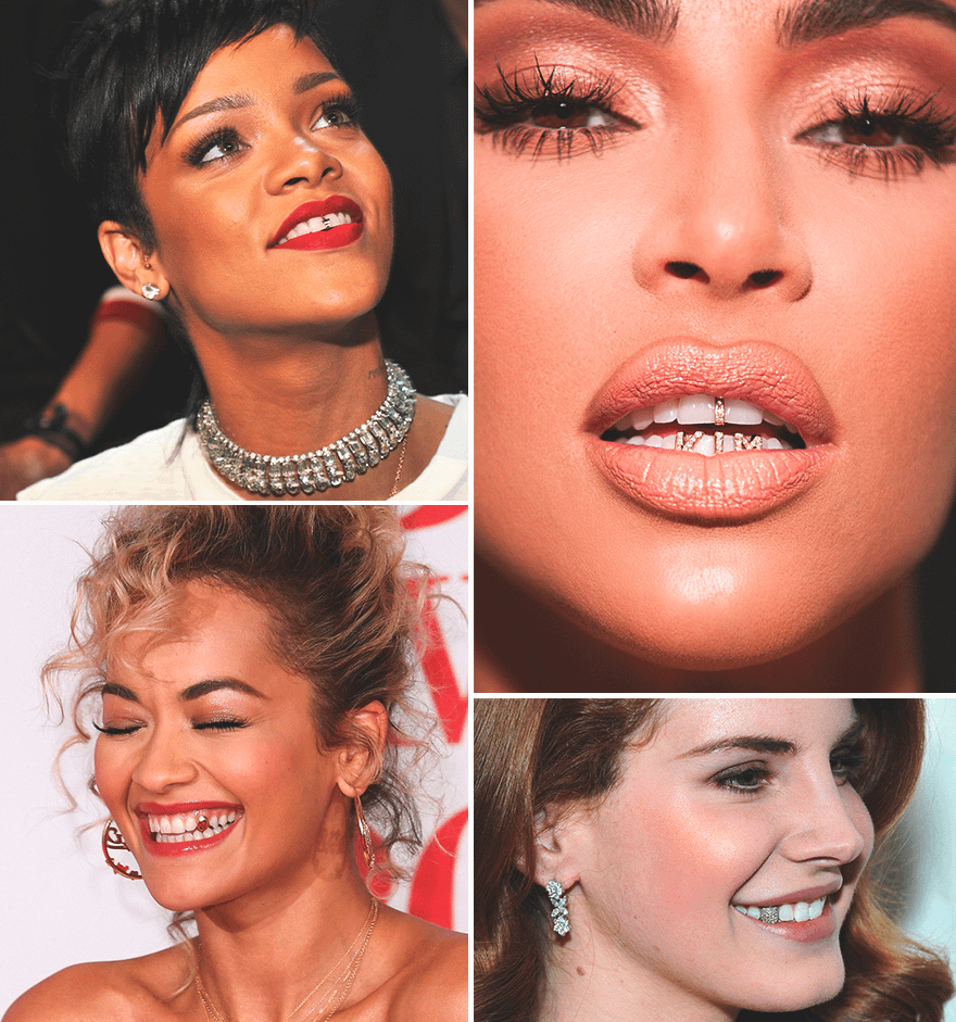 В 90-е годы Мадонна сверкала золотым зубом в клипе Erotica, позже, в 2013-м она примерит и грилзы. С начала 2000-х с ювелирными украшениями на зубах появлялись Рианна, Кэти Перри, Рита Ора, Майли Сайрус, Кара Делевинь, Ким Кардашьян, Пинк, Лана Дель Рей и многие другие западные звезды – это мы еще не называем рэперов.