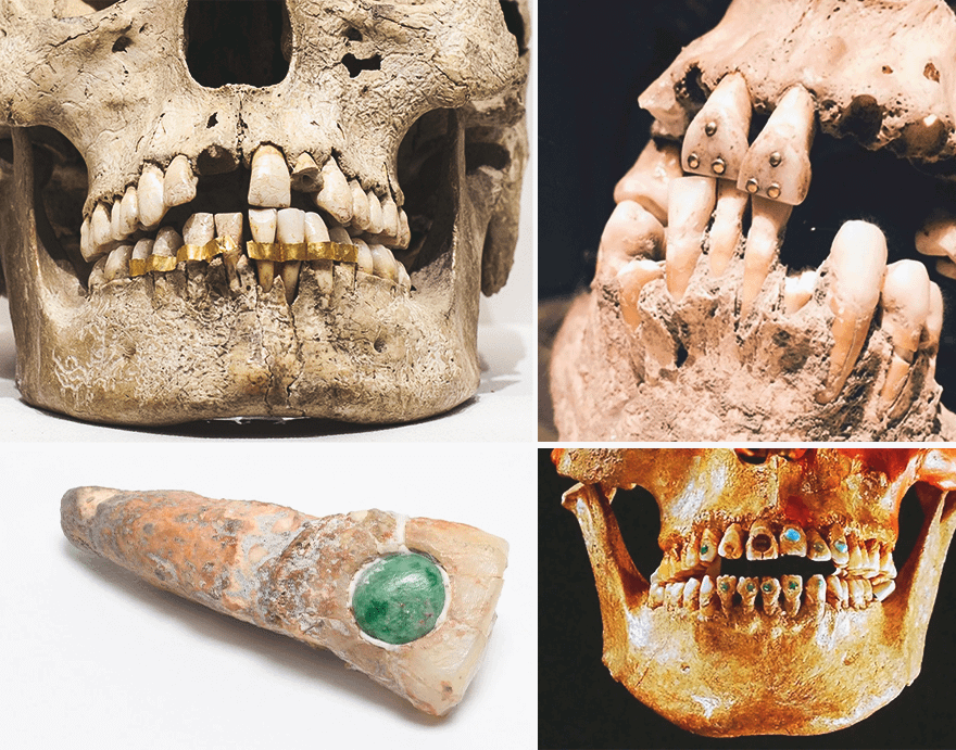 Как и другие способы украшения тела – покраска волос, татуировки, бусы, серьги, браслеты, — практика видоизменения зубов появилась еще в древности. Майя и ацтеки подпиливали зубы, придавая им определенную форму, которая могла рассказать о статусе и принадлежности к определенному племени. Уже тогда появилась инкрустация – в зубе выпиливали отверстие, в которое вставляли драгоценные камни.