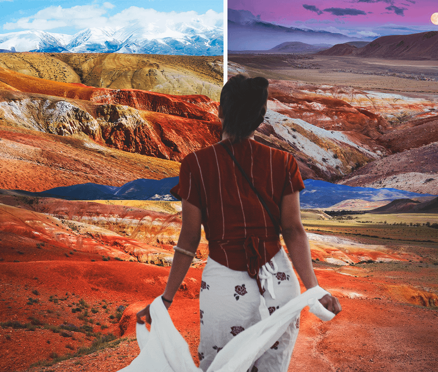 В отличие от настоящего Марса, в долине Кызыл-Чин наблюдается жизнь. Холмистая местность кое-где разбавлена скудной пустынной растительностью: анкафией огненной, курчавкой колющей, ароматной полынью и ветвистыми колючими кустарниками карагана бунге. Лучше приезжать сюда на рассвете: холмы при меняющемся освещении выглядят фантастически, а людей в это время практически нет.