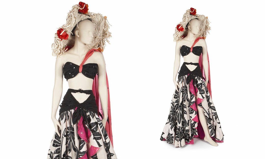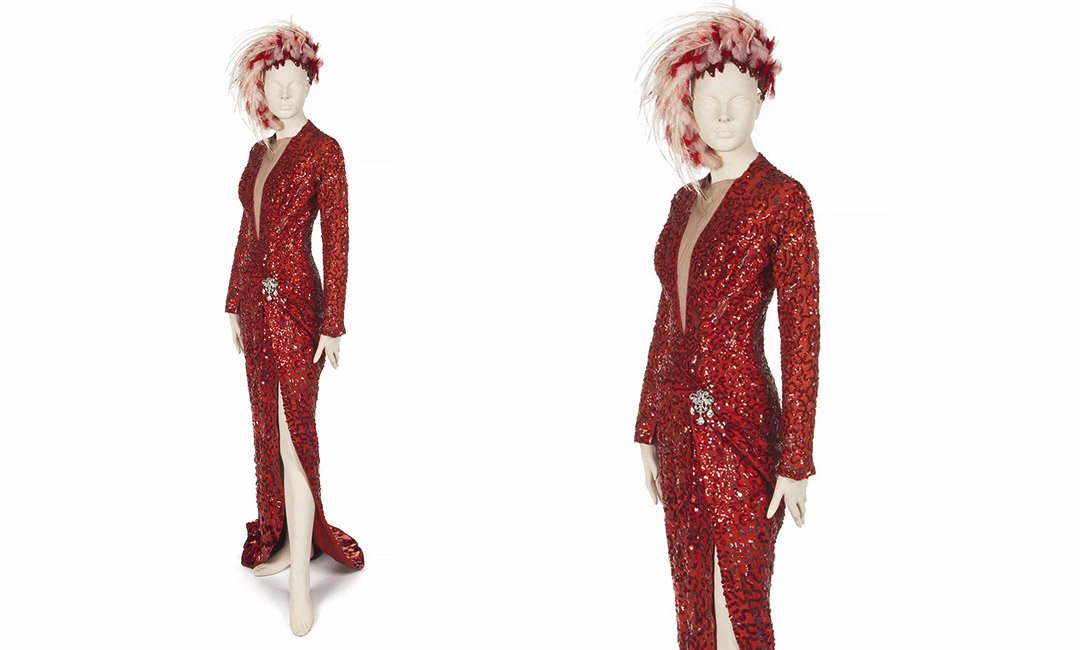 Музыкальная комедия 1953 года «Джентльмены предпочитают блондинок» закрепила за Мэрилин Монро звание одного из главных секс-символов Голливуда. В нем актриса носит красное шелковое блестящее платье в пол с глубоким вырезом от бедра, которое в комплекте с головных убором оценивается в $60000-80000.