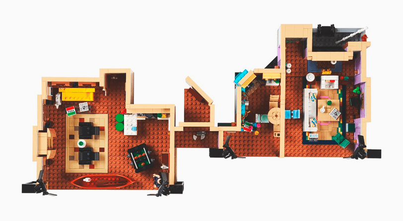 В 2019 году компания Lego выпустила конструктор, вдохновленный сериалом «Друзья». Тогда в наборе был легендарный интерьер кофейни Central Perk и шесть фигурок главных героев. Теперь Lego решила создать еще один набор — на этот раз с квартирами персонажей.