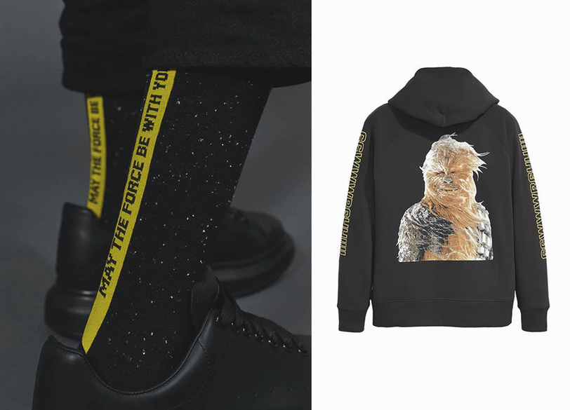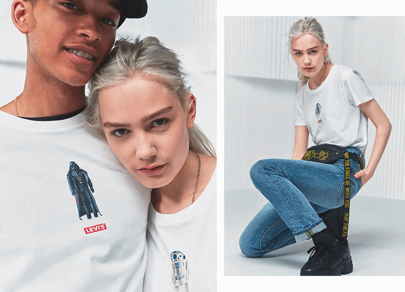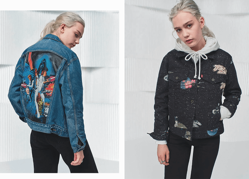 Вместе с выходом трейлера бренд Levi’s подготовил коллекцию, посвященную космосу, джедаям и нашим любимым героям саги. В нее вошли джинсовые куртки с яркими принтами на спине, футболки, худи, носки и шапки.