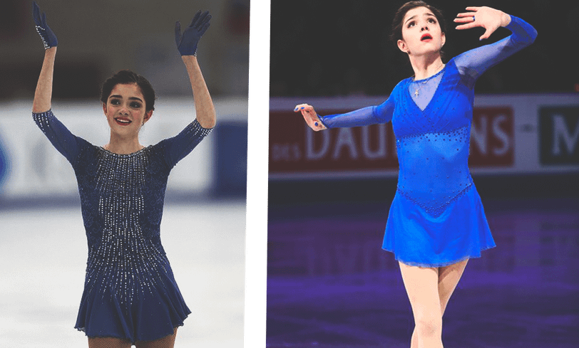 Стилисты нашей чемпионки отлично выделяют ее характер: для короткой программы в прошлом году она была одета в нежно-голубое платье с крупными кристаллами на топе. Для произвольной программы было выбрано чернильное платье со стразами и многоцветным омбре на юбке от розового к фиолетовому. Ее длинные рукава и перчатки всегда подчеркивают красивые движения рук, а открытая шея – хрупкость. В этом году костюмы выполнены в том же стиле: легкие переходы и стразы, имитирующие звезды.