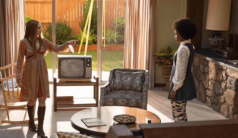 Просматривая «ситком» о Ванде и Вижене, Дарси и Джимми обсуждают, насколько герои были сильны, когда сталкивались с Таносом. В их знаниях есть нечто странное, учитывая предположение, высказанное в ленте «Человек-Паук: Вдали от дома» — здесь мелькала мысль, что Мстители многое скрыли о себе от посторонних, например исчезновение Капитана Америки — так, люди считали, что он погиб во время битвы за Землю, а не ушел в прошлое.