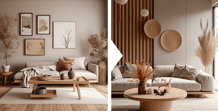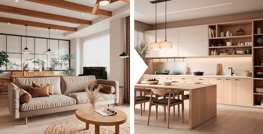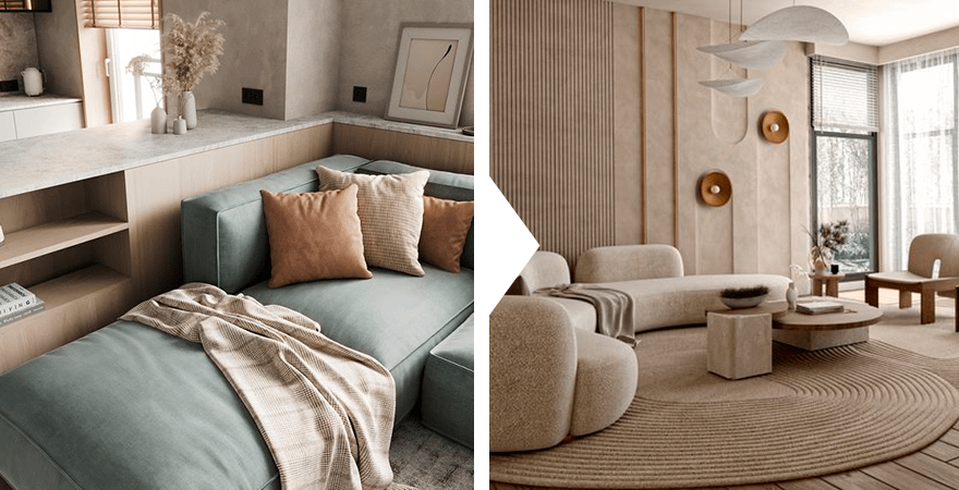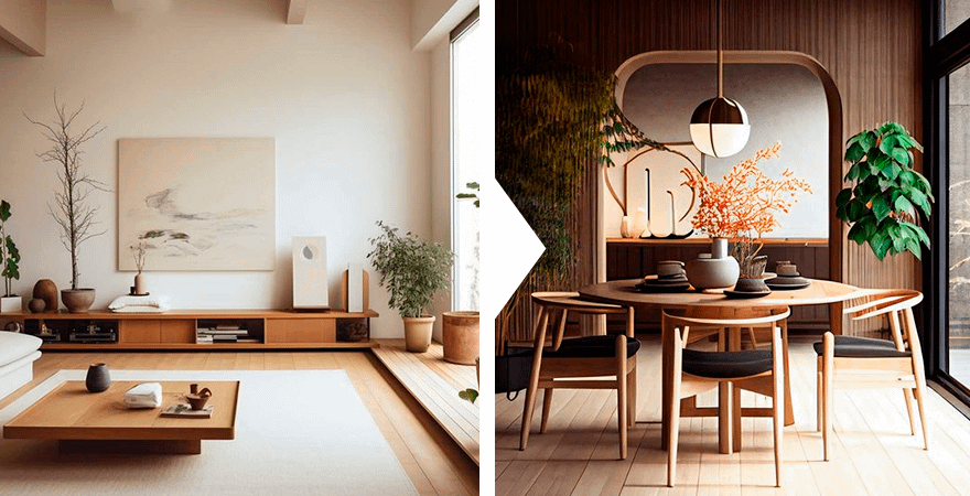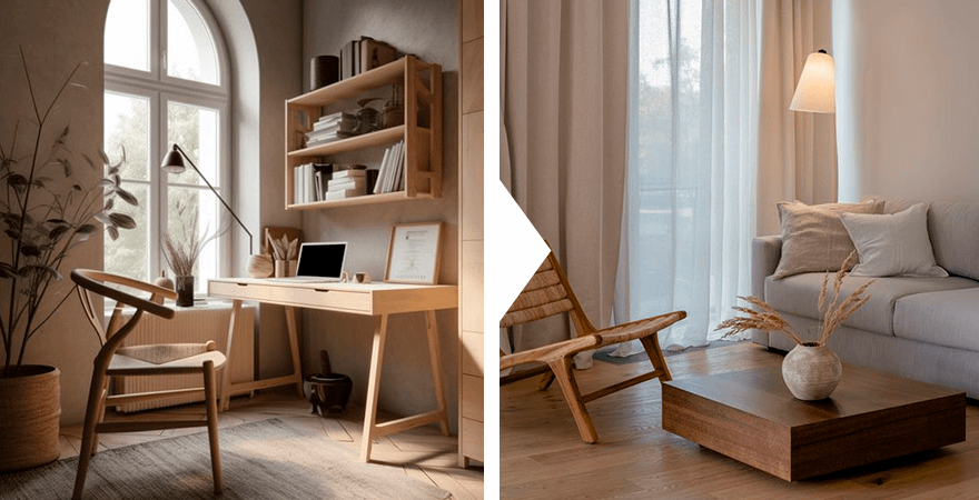 Если хочешь создать интерьер в стиле джапанди и рассматриваешь покупку новой мебели, отдай предпочтение натуральным материалам, преимущественно дереву. Предпочтительнее предметы геометрических форм, без инкрустаций или броских элементов декора.