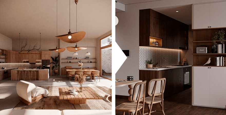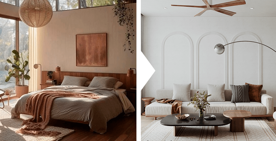 Сдержанность — это параметр, которого стоит придерживаться, декорируя интерьер в стиле джапанди. Не стоит визуально перегружать пространство обилием предметов на поверхностях.