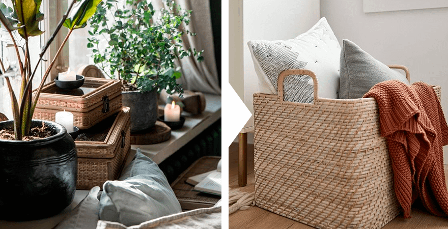 Вместо них присмотрись к плетеным корзинам и коробкам из натуральных материалов. Они хорошо вписываются в интерьер, не создают визуальный шум, но при этом обладают такой же функциональностью, как и пластиковые аналоги.