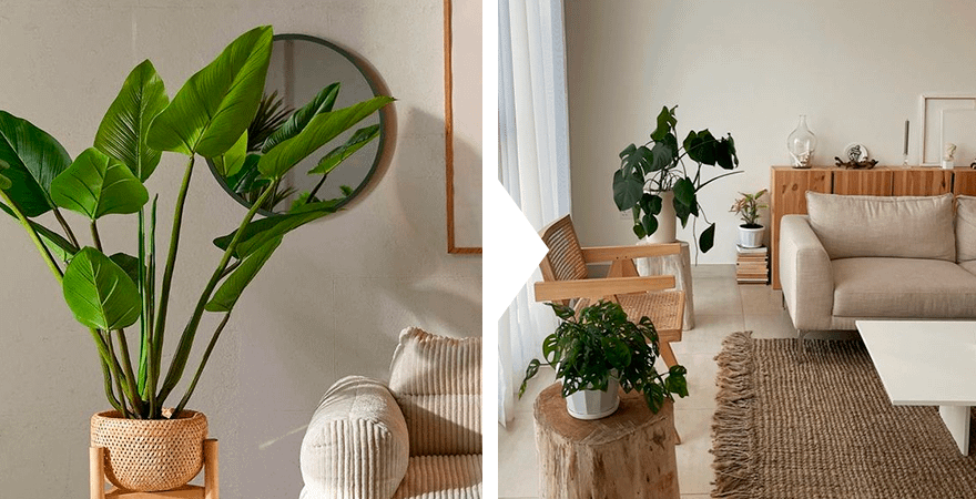 Универсальный декор для стиля джапанди — комнатные растения. Они могут выступать в качестве акцента, например, если разместить их на полках или в больших горшках по периметру комнаты. Подойдут и сухоцветы: они выступят в роли неброского декора, который поможет разнообразить интерьер.
