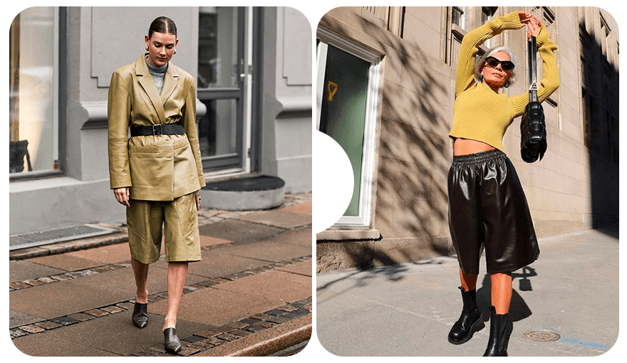 Ты будешь выглядеть уместно в одежде из кожи весной и летом, если вместо брюк выберешь шорты или укороченную юбку. При этом необязательно носить модели в базовом черном цвете. Цветная экокожа тоже в тренде. Особенно вещи в пастельных оттенках: сером, розовом, светло-зеленом и голубом.