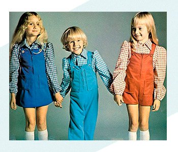 Детская мода в СССР отнюдь не претендовала на эксклюзивность и уникальность, отчасти из-за железного занавеса. Советское правительство раз в 5 лет само решало, какую одежду будут носить дети, вплоть до количества пуговиц на детском белье. В середине 80-х даже появились четкие рекомендации по выбору цвета: для девочек — красные, оранжевые тона, а для мальчиков — коричневые, синие и оливковые. После развала СССР ситуация начала меняться, на российский рынок стала попадать дешевая и не слишком качественная одежда из Китая и Турции. Самые типичные детские вещи тех времен: джинсы и джинсовые юбки с кружевом, спортивные костюмы, пуховики и мохеровые кофты ярких расцветок.