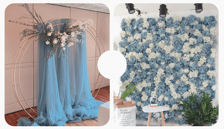 Одна из самых важных частей свадебного декора — фотозона. Именно к ней тянутся все гости, чтобы сделать памятные фотографии с приятного вечера. Если хочешь создать это пространство в стиле хэмптонс, фотозону оформи в голубых оттенках. Для ее создания можно использовать как фотофон или воздушные шары, так и живые или искусственные цветы. Идеально впишутся в морской стиль белые и пышные ткани. С их помощью фотозону можно сделать визуально более воздушной и нежной.