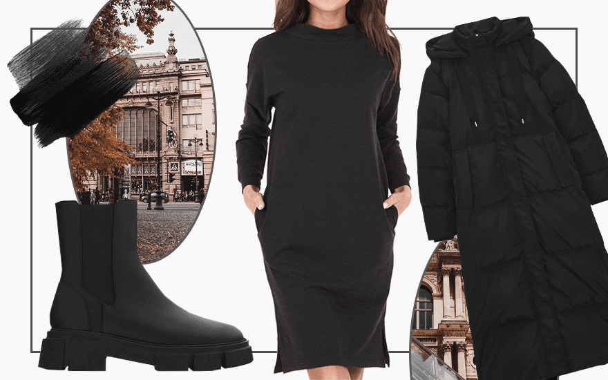 Анорак — универсальная вещь на осенне-зимний период, всегда выручит при дожде, ветре, снеге и легко впишется в любой образ. Если думаешь, что его можно носить только со спортивными вещами, джинсами и кроссовками, то пора отбросить стереотипы. Этот предмет гардероба эффектно смотрится и с более женственными вещами, например, платьями свободного кроя и ботильонами на рифленой подошве. Предлагаем собрать все в образ total black, который выглядит стильно при любых обстоятельствах.