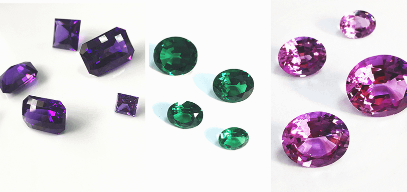 Кварц. Цветовая гамма камня насчитывает шесть разновидностей. Интересен в качестве имитаций натуральных аметистов, цитринов, дымчатых и зеленых кварцев. Синтетическое сырье относительно недорогое, однако имеются сложности с его полировкой, что сказывается на стоимости ограненных камней. Кроме того, кристаллы кварца нельзя нагревать, поэтому производитель украшений может использовать только ручную закрепку камней, из-за чего возрастает цена изделия.