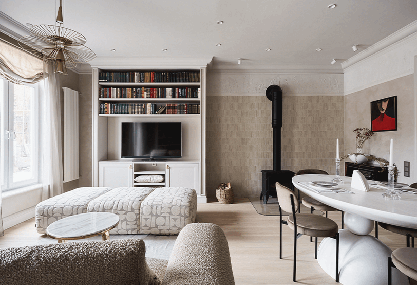 Главный принцип дизайна вне времени — осознанный подход к пространству в квартире. Такой интерьер устойчив к «быстрой» моде и будет радовать вас не один год. Любое помещение в первую очередь должно отражать личность, быть комфортным в пользовании и уходе. Рекомендуем выбирать качественную мебель, устойчивое напольное покрытие, давать жизнь старым вещам.