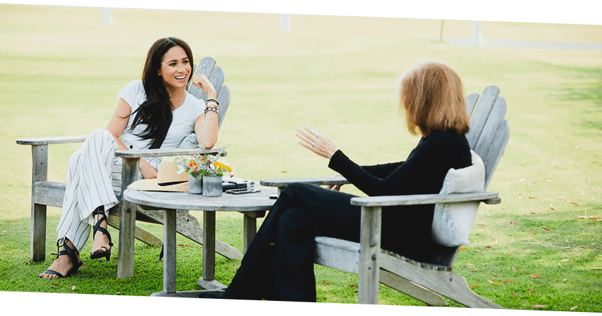 Сразу после Глория напомнила, что сила не в иерархии, а в ментальной взаимосвязи тех, кто отстаивает свои позиции. В ходе беседы женщина обратилась к строчке, выгравированной на ее подарке для Меган — браслете с надписью: «Связаны, а не ранжированы».