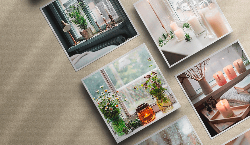 Фотографии хорошо будут смотреться на подоконнике рядом с растениями. Особенно, если подобрать рамки в единой цветовой гамме с горшками или оттенках, которые будут эффектно ее дополнять.