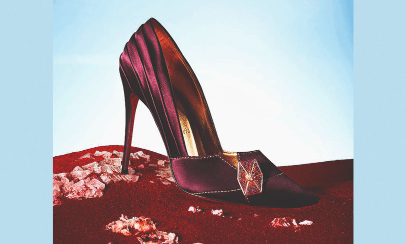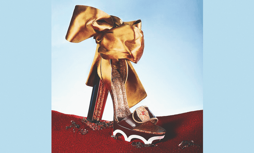 Обувь, созданная по образу Розы Тико в исполнении Келли Мари Тран, – каблук-столбик и шелковистая золотая ткань, выражающая ее стойкий нрав.