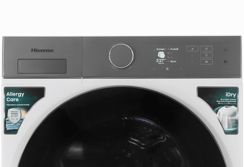 Сушильная машина Hisense DH5I804UW2D1 подходит по всем параметрам. Технология iDry позволяет высушить 1 кг белья всего за 29 минут — удобно, когда вещи нужны срочно.