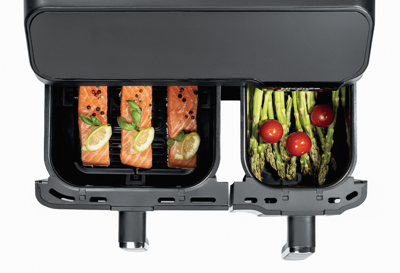 Компактный дизайн подойдет даже для небольшой кухни, сенсорное управление делает процесс интуитивным, а съемные корзины с антипригарным покрытием легко мыть после использования. Отличная находка для тех, кто выбирает здоровое питание и не хочет тратить на него лишнее время и пространство.
