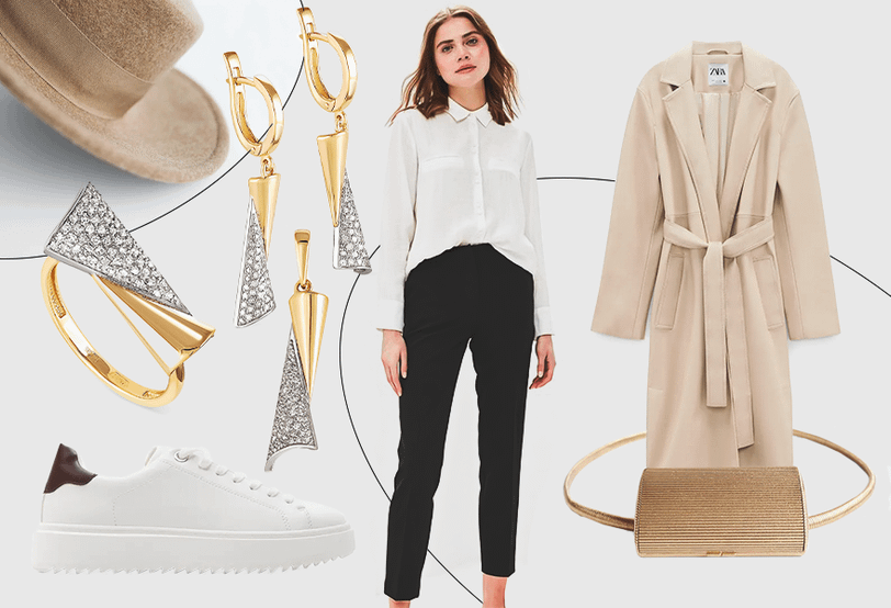 Если у тебя под рукой нет роскошного вечернего платья или стильного костюма, а выбранный ресторан предполагает некий (даже негласный) дресс-код, то классические брюки и рубашка вполне сгодятся. Добавь к паре удлиненное пальто, лакированные ботильоны на толстом каблуке и стеганую сумку-клатч. Так ты как раз попадешь под формат ресторана, а завершив образ элегантными украшениями с белым жемчугом и черным ониксом, станешь выглядеть, как икона стиля.