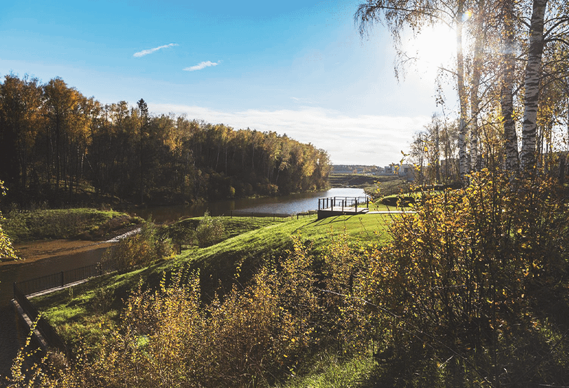 Даниэль Шиндлер подчеркивает, что при проектировании своих работ вдохновляется местной природой — это нашло отражение в «Березках». Так, загородный участок в 60 гектаров окружен водой с двух сторон, где обитают бобры и утки. Неподалеку расположен лесной массив, где могут прогуляться жители. Остается только наслаждаться гармонией и спокойствием.
