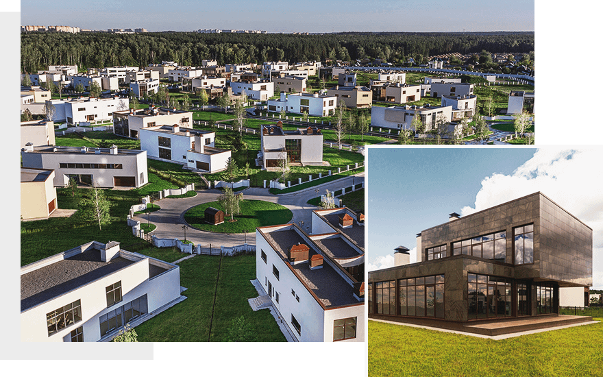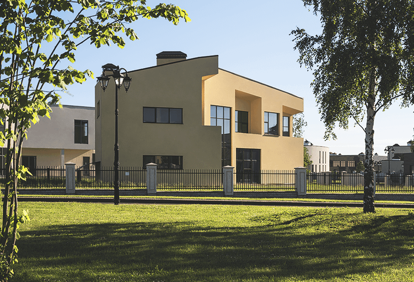 Коттеджный поселок — это отдельное пространство, обособленное от города. Как правило, он меньше стандартного микрорайона — количество предполагаемых жителей невелико. Все это формирует у людей нечто, схожее с принадлежностью к особому клубу — логично, что у элитарной группы должна быть своя айдентика. Отчасти роль опознавательного знака играет планировка домов.