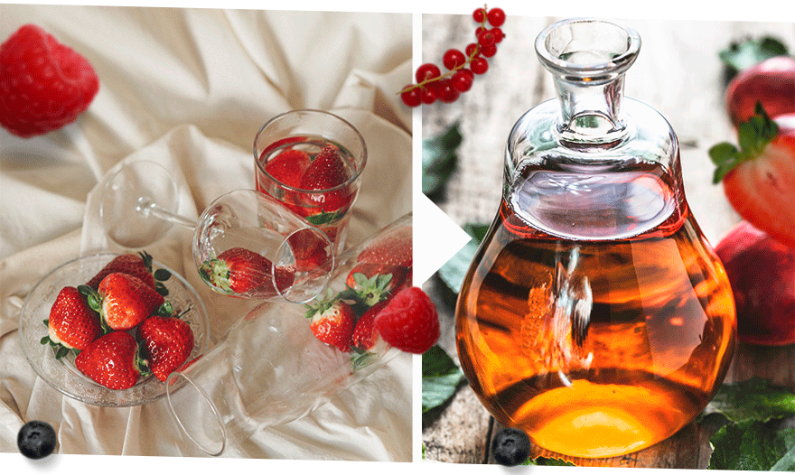 Простой метод заключается в смешении яблочного уксуса и ягодного сока. Для этого засыпь плоды сахаром и оставь их на ночь. Получившийся сок вылей в уксус, а ягоды используй для приготовления выпечки.