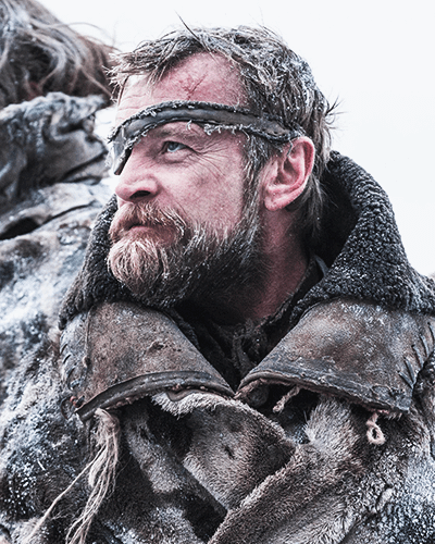 Кто он: громила по прозвищу Пес раньше служил в Королевской гвардии. Пережил много приключений, экзистенциальный кризис и в конечном итоге присоединился к Братству без знамен. Сейчас встал на сторону Сноу и Дейенерис в борьбе против Белых Ходоков.
