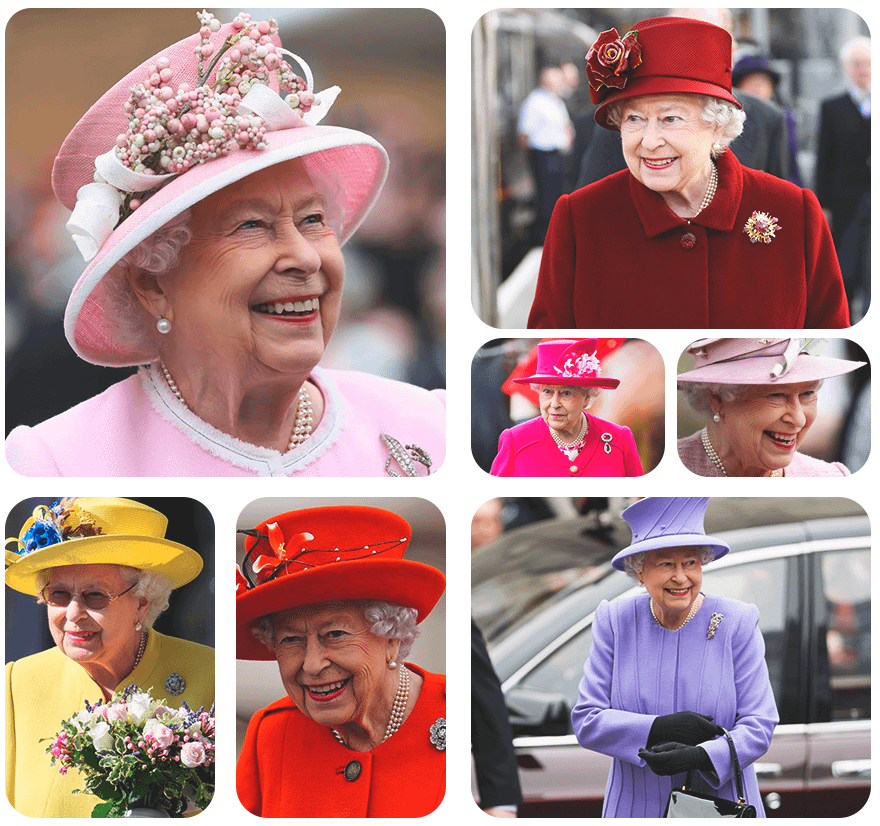 Есть несколько основных версий, объясняющих, почему Елизавета II предпочитает носить яркую одежду и не появляется на публике без шляпы, украшенной цветами. Одни считают, что таким образом ее величество пытается выделиться из толпы. Чтобы каждый из ее подданных мог сказать: «Я видел королеву». Другие уверены, что шляпа королевы — очередное напоминание о том, что она связана контрактом с военной службой, так как именно аксессуар является частью формы военнослужащих.