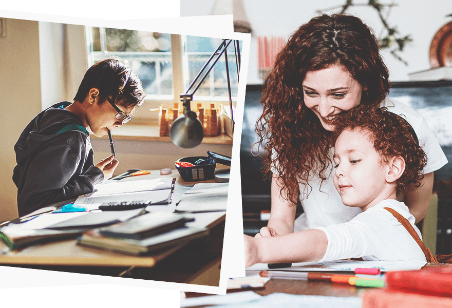 Чтобы ребенок не отвлекался во время занятий, ему нужно создать комфортную учебную обстановку. Если говорить о письменном столе и стуле, то стоит обратить внимание на эргономику. Оптимальный вариант — взять стол- и стул-трансформеры, которые будут расти вместе с твоим ребенком. Расположить их лучше у окна, где много естественного света, а для вечерних занятий приобрести настольную лампу. Под столом можно организовать место хранения для бумаг и лишней канцелярии, а сбоку расположить книжный стеллаж.