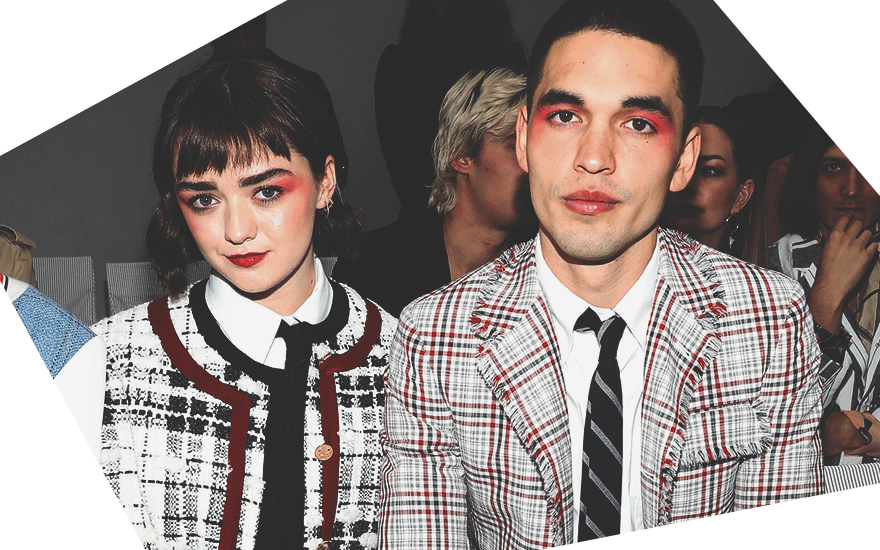 В сентябре актриса «Игры престолов» Мэйси Уильямс и ее бойфренд Рубен Селби посетили парижское шоу дизайнера Тома Брауна. Ребята не только надели одинаковые носки и сочетающиеся между собой костюмы, но и нанесли на веки одинаковые тени кораллового оттенка.