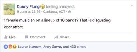 Сложившаяся ситуация кажется комичной, учитывая, что в Австралии нет недостатка в успешных исполнительницах. Courtney Barnett, Tkay Maidza, George Maple, Ngaiire давно уже побороли стереотип о том, что музыкальная сцена принадлежит мужчинам.