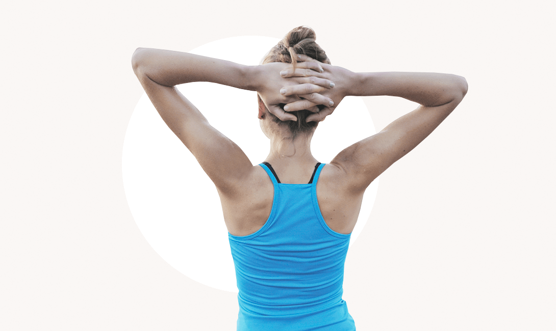Как выполнять: Сделайте все то же самое, что и в первом упражнении, только вместо того, чтобы раскрывать локти, опустите их вниз вместе с шеей. В этот момент тянитесь макушкой вперед, а потом к полу, чтобы почувствовать, как мышцы шеи растягиваются и расслабляются.