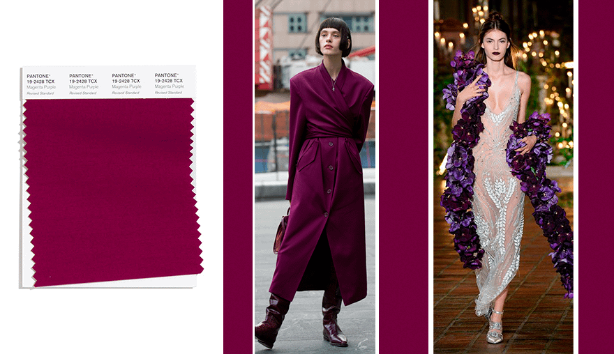 Гипнотический и глубокий оттенок, добавляющий интриги в образ. Фиолетовый цвет в большом количестве может утяжелить образ, поэтому те же Rodarte подчеркнули белое прозрачное платье с серебряными вставками цветочным боа оттенка пурпурной мадженты. Хорошо он смотрится и в сочетании с универсальными цветами. Можешь также использовать вместо насыщенного фиолетового нежный лиловый или сиреневый, чтобы придать луку мягкости.