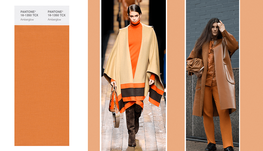 Выбирая фактуру, отдавай предпочтение шерсти, если деталь с этим оттенком у тебя будет основной, либо коже или лаку, когда будешь использовать этот цвет как дополняющий. В одном из образов для Недели моды Michael Cors разбавил платье в рубчик цвета амбры накидкой цвета слоновой кости и сапогами из темной коровьей кожи — используй это сочетание, создавая образ.