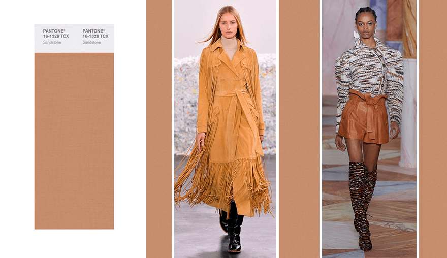 Хотя оттенок говорит больше о природе и приверженности корням, он остается благородным цветом. Хорош сам по себе для повседневной носки. Пробуй монохромный образ с бахромой, чтобы добиться отсылки к индейским мотивам, как это сделала Gabriella Hearst, или бери кожаную фактуру, чтобы использовать ее как вспомогательный элемент. Обрати внимание на образ от Ulla Johnson: в сочетании с белым и шоколадным цветами, а также аксессуарами из серебра юбка цвета песчаника акцентирует внимание на бедрах, при этом не выглядит дешево.
